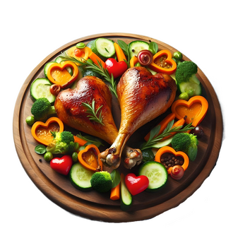Don't worry, you will not have to finish the whole goose; bones, beak and all just as Old Father William did. Instead you will take a gander at roast drumsticks on a colorful quartet of veggies.