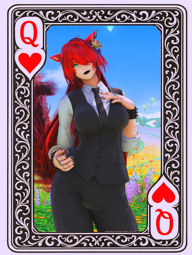 About: Estelle Eclipse is a poised and polished Au Ra/Miqo'te hybrid with a flair for the dramatic and a wardrobe dipped entirely in black. Equal parts elegance and edge, she brings her signature goth-chic aesthetic to every step she takes—usually in heels. As a dedicated greeter and front-facing presence at the Queen of Hearts Casino, Estelle thrives in high-class nightlife, welcoming patrons with a soft smile, sharp style, and an eye for detail. Known for her love of glamour, her intolerance for rudeness, and her disdain for idle hands, Estelle keeps her world refined, bold, and always a little mysterious.