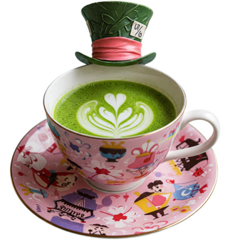 Mad Hatter and his friends enjoy this tea at their "Mad Tea Party." With a slightly bitter vegetal and umami flavor, this matcha has a smooth and creamy texture with your choice of cream design on the top.