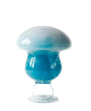 This refreshing Blue Lagoon scorpion bowl cocktail combines the smooth taste of vodka with the tangy sweetness of blue curaçao and the fresh citrus flavor of lemonade in the iconic mushroom the Blue Caterpillar sits on over the dry ice effect of his cigarette smoke.