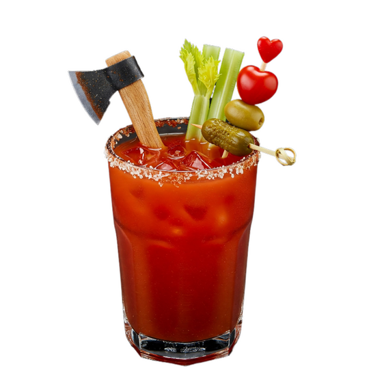 This Bloody Mary emanates the Queen's carnal desires from her head hunting pursuits, combining vodka, tomato juice, Worcestershire sauce, hot sauce, garlic, herbs, horseradish, celery, olives, pickled vegetables, salt, black pepper, lemon juice, lime juice and celery salt.